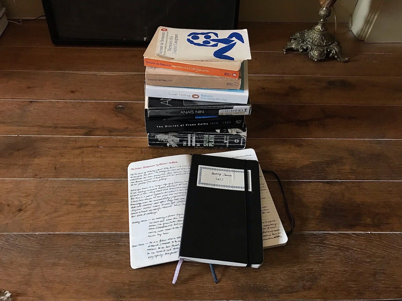 taking an empty journal, i made an expansive, messy list of every book i had been curious about over the years but had, for one reason or another, put off and never got around to. i trawled through lists online, went down rabbit holes of algorithmic suggestions, made note of every mention and reference from books i had read, browsed and scanned through every local bookshop, looked up the name of every author i had always heard of but never investigated. i would never read all of this in a year but that wasn’t the point. i just wanted to give myself the opportunity to read anything i wanted. 2025 was a year i would have the space and time to think deeply not only about what i wanted to read but how i wanted to read it. this was my life line to regaining desire and feeling close to myself again after sensing something fundamental about myself had changed. it gave my life at that time a comfortable form; guiding me to explore and engage without oppressive or demanding strictures. whilst my reading momentum waxed and waned throughout the year with the deamnds of life (reading nothing at all in july) i maintained the practice of physically recording every book, article, essay and interview that i read as well as my reflections on them. this was my reading journal.
